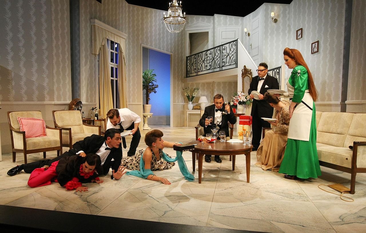 Die Gäste allesamt aus der Upperclass sind unschlüssig. Keiner will die einflussreichen Jubilare einem Skandal aussetzen und ihren guten Ruf aufs Spiel setzen. So vertuschen sie voreinander die Tatsachen und ihre Erklärungsversuche klingen immer fantastischer.