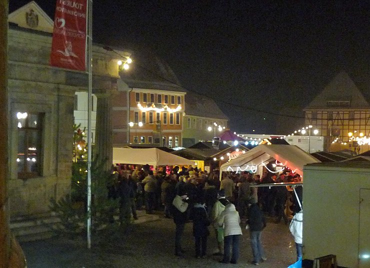 Weihnachtsmarkt kurz vor Weihnachten? Gestern war es schon voll aber heute gegen 19:30 war es mehr als voll, hier auf dem Markt von Sondershausen.