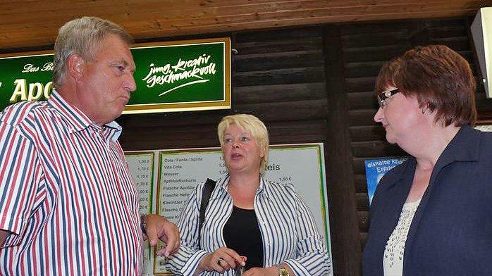 Archivfoto vom Sommerfest der FDP: Bernd Karnstedt im Gespräch mit Franka Hitzing (Vizepräsidentin Thüringer Landtag) und Antje Ruppe (Kreisvorsitzende der FDP).