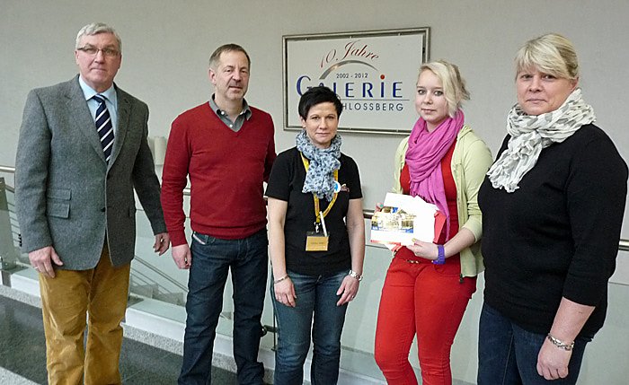 Negen Wolfgang Linz waren bei der Übergabe Uwe Söchting und Cathlen Seifert von der Werbegemeinschaft der Galerie am Schlossberg dabei. Jennifer aus der Jugendhilfestation und die Leiterin der Station, Bettina Horn-Rätsch, nahmen die Gutscheine entgegen. Die Mittel sollen zur Ausgestaltung der Ferienfreizeit genutzt werden.