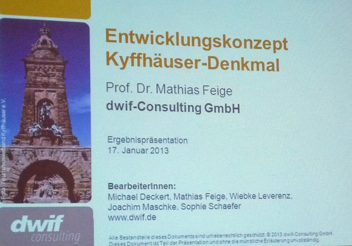 Der Tourismusverband Kyffhäuser hat auf Beschluss seines Vorstandes mit der dwif-Consulting GmbH eines der renommiertesten deutschen Beratungsunternehmen der Tourismus- und Freizeitbranche beauftragt, dieses Konzept zu erstellen. Das dwif war u.a. federführend bei der Erstellung der Landestourismuskonzeption Thüringen sowie der Kulturtourismuskonzeption Thüringen und ist von Beginn an verantwortlich für das Tourismusbarometer des Ostdeutschen Sparkassenverbandes.