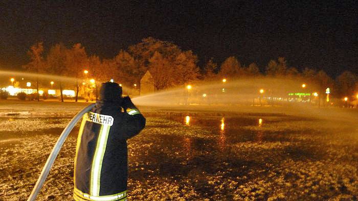 Gestern und heute wurde daher nochmals Wasser aufgespritzt, sodass die Verantwortlichen davon ausgehen, dass am Wochenende ein Familiennachmittag auf der Eisfläche stattfinden kann, sofern sie nicht wieder mutwillig zerstört wird. Am morgigen Freitag wird noch einmal mit etwas warmen Wasser versucht, du Unebenheiten auf der Eisfläche zu beseitigen.