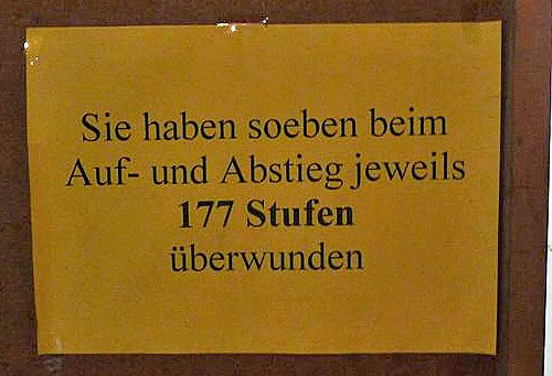 Einen Lift gibt es nicht, aber wenn man mal auf die Aussichtsplattform hochsteigt, immer am Tag des offenen Denkmals möglich, muss man nicht mitzählen.