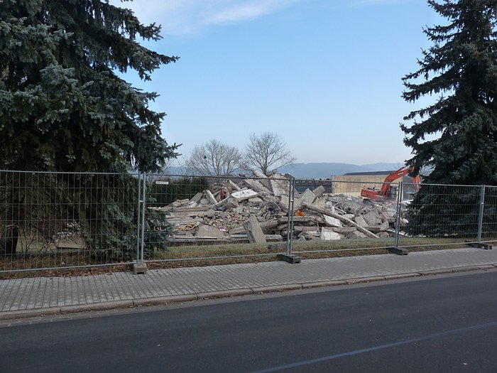 Autor: khhIm Januar war hier mit den Abrissarbeiten begonnen worden. Die Wohnungsbau Genossenschaft Fortschritt will hier barrierefreie Wohnungen bauen.