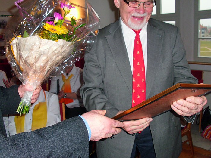 Der Präsident des Kyffhäuserkreissportbundes Dr. Andreas Räuber zeichnete Dr. Harald Strauch, die für sein Engagement für den Berglauf aus.