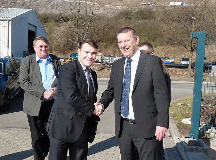 Die Begrüßung erfolgte durch den Geschäftsführer Jörg Kauschat (re.) und den Betriebsleiter René Tiede auf dem Betriebsgelände in der Schachtstraße von Sondershausen. Wenn man die Tätigkeit von isoplus (www.isoplus.de) mit kurzen Worten beschreiben wöllte, müsste man sagen, man veredelt "einfache Stahlrohre" durch Kunstoffummantelung mit einer gehörigen Portion Dämmstoff zu wichtigen Instrumenten der effektiven Weiterleitung von Wärme, und weniger bekannt auch von Kälte.