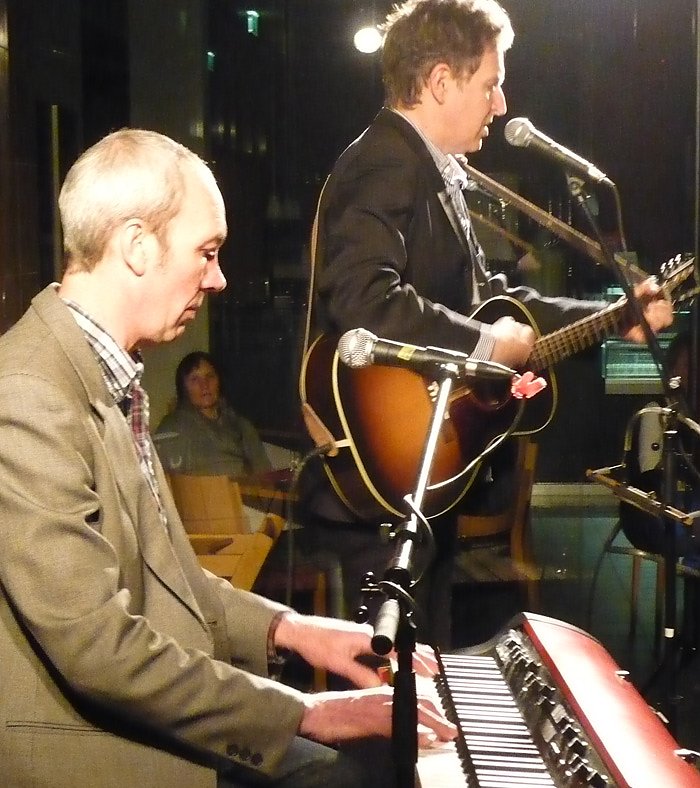 Dann betrat wiederum Chris die Bühne und verstärkte Steve am Keyboard mit überaus abwechslungsreichen, fast jazzigen Orgel- und Keyboardpassagen und sang bei mehreren Songs die zweite Stimme. Bemerkenswert war auch seine Akkordeonbegleitung bei zwei Stücken Steves, die einerseits an Musettemusik, dann wieder an Django-Reinhardt-Jazz aus den 1930er Jahren erinnerten. Sicher ist das ein Beleg dafür, dass sich Steve beim Songwriting ohne musikalische Scheuklappen auch durch die europäische Musik bewegt. Weiter ging es durch die lange Songschreiberkarriere von Steve Wynn. Von "Carolyn" über "Boston" und "Grace" steigerten die beiden Musiker beständig die Intensität ihres Vortrags bis hin zum furiosen Klassiker "Amphetamin", womit sie ihr Publikum vollends gewonnen hatten. Es war erstaunlich, wie dicht der auf zwei Musiker reduzierte Sound dennoch war. Und natürlich waren auch hier wie bei vielen der CD-Einspielungen Steves Wynns Anleihen in der Rockmusikgeschichte wie den legendären VELVET UNDERGROUND oder Loo Reed unüberhörbar gewesen, gewürzt mit einer ordentlichen Prise Popmelodieseligkeit und einem gut geerdeten Gefühl für hymnischen Geradeausrock.