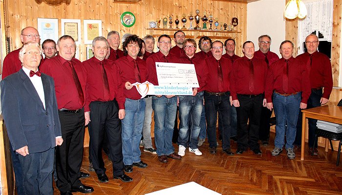 m Spenden für das Kinder- und Jugendhospiz Mitteldeutschland. 250 Euro kamen so für den guten Zweck zusammen. Cirka 15 Auftritte bestreitet der Chor im Jahr und begeistert sein Publikum mit Klängen aus verschiedensten Musikgenren. Der Männerchor Holzsußra zählt derzeit 27 Mitglieder und trifft sich zu regelmäßigen Chorproben. "Wir freuen uns hier helfen zu können. Das Kinder- und Jugendhospiz liegt unseren Vereinmitgliedern ganz besonders am Herzen. Danke an alle Spender" , so Steffen Lupprian vom Männerchor.