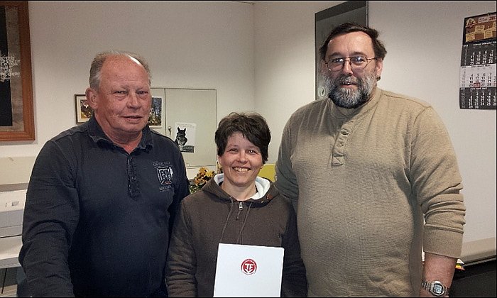 Im Bild zusehen sind der Kassenwart des KFA Hilmar Langbein, Kerstin Triebel sowie der KFA-Vorsitzende Jürgen Schweser.
