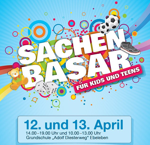Der Förderverein der Grundschule Ebeleben veranstaltet am Freitag, den 12. April von 14.00 Uhr bis 19.00 Uhr sowie am Sonnabend dem 13. April von 10.00 Uhr bis 13.00 Uhr einen Kleiderbasar für Kids und Teens. Angeboten werden Frühjahr und Sommermode von der Wiege bis hin zur Jugendweihe, von der Jogginghose bis zum Festkleid, von der Größe 50 bis zur Größe 188. Weiterhin im Angebot ist leichtes Schuhwerk vom Baby (Erstlingssocken)bis zur Größe 40. Alles für die Erstausstattung beim Baby, sowie Babyschaukeln, Kinderwagen oder Buggys, Babyschalen und Kindersitze, von der Bettwäsche bis hin zum Reisebett.