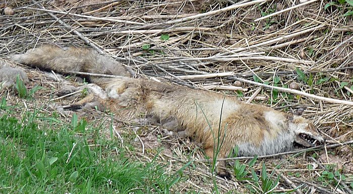 Autor: khhOffensichtlich vor einiger Zeit angefahren wurde das arme Füchslein mal so einfach an der Straße zwischen Sondershausen Jecha und Berka im Straßengraben abgelegt. Leider wie so viel anderer Müll. Sobald sich an vielen Straßen im Kyffhäuserkreis an der Seite ein Graben zeigt, wird entsorgt auf "Teufel komm raus".