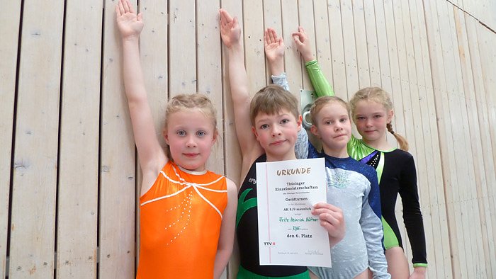 In diesem Jahr war der Gastgeber der Landesmeisterschaften Rudolstadt. Jedes Jahr im Frühjahr finden die Einzelmeisterschaften statt. Für die Mädchen und Jungen, die gerade die Altersklasse gewechselt haben, ist das Erlernen neuer Übungen an höheren(und bisher unbekannter Geräte), eine große Aufgabe. Geturnt werden Pflichtübungen an allen Geräten, mit unterschiedlichen Ausgangswerten.