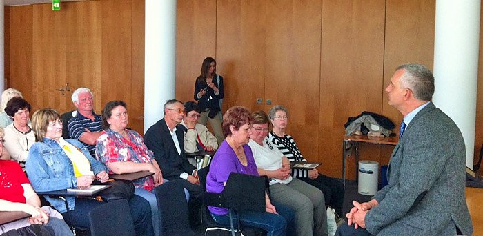 Das Besuchsprogramm beinhaltete nicht nur eine angeregte und aufschlussreiche Gesprächsrunde mit Lemme, darüber hinaus besuchten die Teilnehmerinnen und Teilnehmer auch eine spannende Plenardebatte. Abgerundet wurde der Besuch mit einem Rundgang durch die berühmte Kuppel des Reichstagsgebäudes.