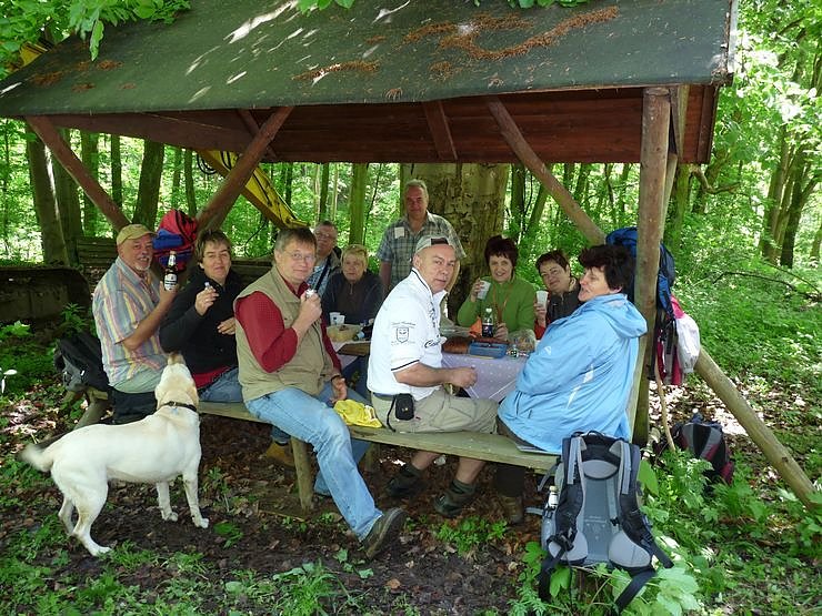 Seit nun schon 10 Jahren trifft sich diese Gruppe aus Stockhausen um in der Natur zu wandern und bei dem einen oder anderen mitgenommenen Bier einrichtiges Picknick zu veranstalten. Sogar ein speziell gebackenes Pfingstbrot hatte man dabei und herrlich duftende und schmeckende Knackwurst. Während die Gruppe später weiter in Richtung Neuheide zog, machte sich der Wegwart genau in die andere Richtung davon.