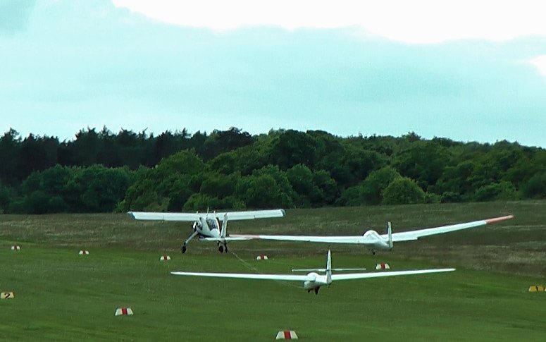 Heute nutzte man die volle Schlepplänge von 1.300 Meter um die Segelflieger auf 600 bis 700 Meter zu schleppen.