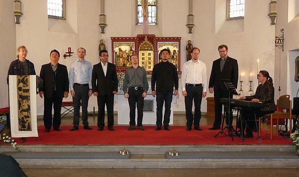 Um 15:00 Uhr war es gestern soweit. Fürst Karl-Günther (alias Günter Albrecht) und Richard Wagner (alias Wilhelm Schreier) begrüßten Anwohner und Gäste in der Kirche. Unter den Gästen waren auch sehe sangesfreudige Herren. Heute etwas salopp gekleidet sangen die Herren des Nordhäuser Opernchors ein Ständchen zum 200. Geburtstag Richard Wagners.