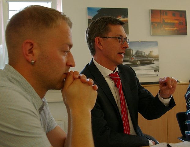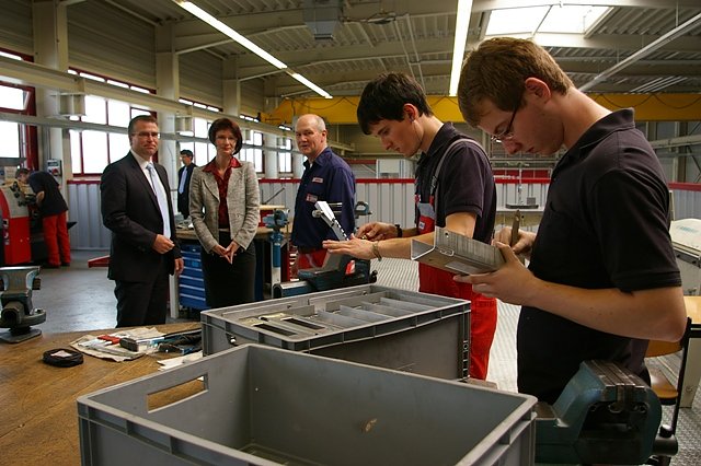 Autor: enDas von den beiden Brüdern Ulrich und Hubert Biehler geleitete Unternehmen Technik in Form kann auf eine sehr erfolgreiche Ausbildung junger Leute verweisen. So waren bei der Vorstellung der Arbeitslosenzahlen auch die Mitarbeiter Tino Stadermann, Meister Werkzeugbau, Daniel Bäthe, Leiter Laser und Werkzeugbau und Sebastian Braun, Programmierung und Konstruktion anwesend. Sie sind Beispiele dafür, dass sich Qualifizierung lohnt. Alle drei haben bei Technik in Form gelernt und sich vom Werkzeugmacher weitergebildet und konnten aus ihrer Arbeit berichten.