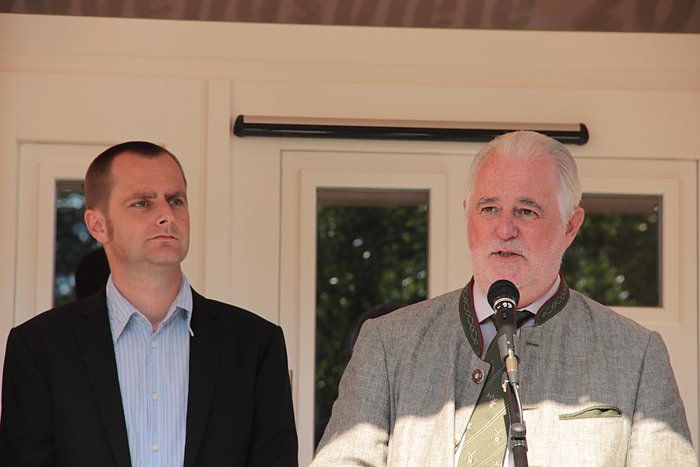 Minister Reinholz (re.) zusammen mit dem Bürgermeister der Gemeinde Kyffhäuserland, Knut Hoffmann.