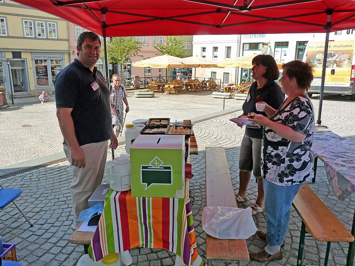 Die Mitarbeiter des Kreisjugendrings Kyffhäuserkreis sind nicht unter die Händler gegangen, auch wenn man heute Kuchen verkaufte.