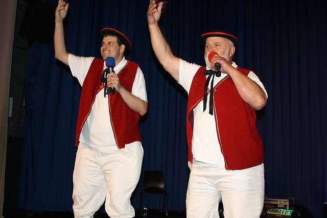 Einer der Höhepunkte und der Abschluss der Wertungsshow zugleich war der Auftritt der Finnecker Herzbuben, alias Peter Langenegger und Steffen Becker, aus der Artener Stiftungswerkstatt. Täuschend echt brachten sie mit dem Erfolgssong der eigentlichen Herzbuben den Saal zum Toben. Dafür gab es bei der Siegerehrung den Pokal in der Kategorie Gesang mit CD. Und wie es sich für Stars gehört, herrschte bei ihrer Autogrammstunde im Volkshausfoyer dichtes Gedränge.