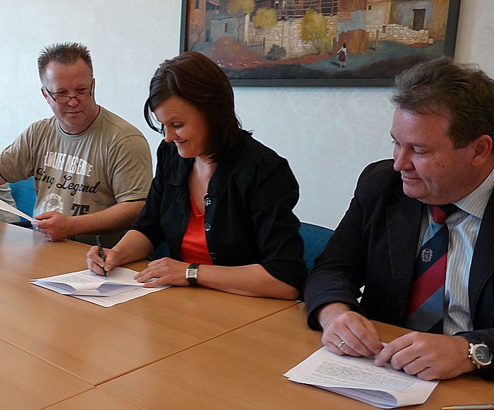 Das Papier wurde im Anschluß von Torsten Blümel (Kreistagsfraktion), Landrätin Hochwind und Cornelia Kraffzick (Kreistagsfraktion unterzeichnet. Das Papier war im Wechsel von Hochwind, Blümel und Vogt vorgelesen worden. In der Beigefügten pdf-Datei finden sie den kompletten Wortlaut des Papiers.