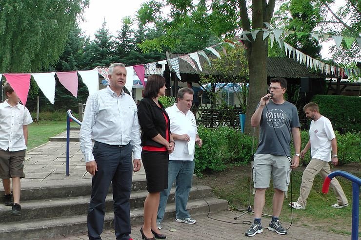 Die Besucher erwartet ein interessantes und abwechslungsreiches Programm. Zunächst begrüßte aber Marco Bartsch (Ebelebener Sport- und Schwimmbadverein e.V. (ESSV)) die Ehrengäste. Neben "quasi" Hausherr, Ebelebens Bürgermeister Uwe Vogt (re.), auch Landrätin Antje Hochwind (die später noch eine "tragende" Rolle hatte) und Bundestagsmitglied Steffen-Claudio Lemme (alle SPD), der auch am Wochenende auf Wahlkampftour durch den Kyffhäuserkreis war.