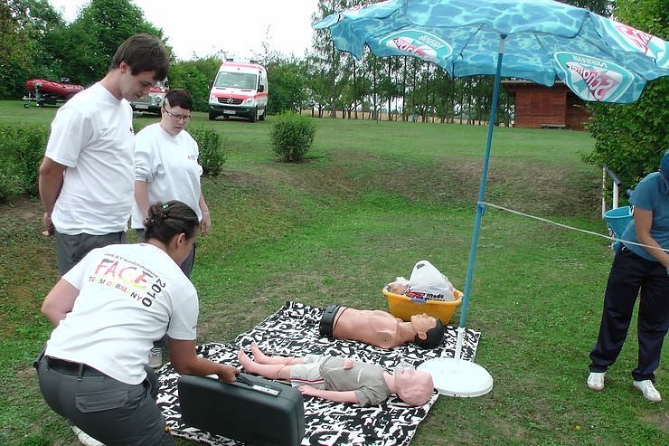DRK und Wasserwacht zeigten viel Übungen, so eine Herz-Lungen-Wiederbelebung und das Anlegen von Verbänden. Um 14 Uhr und um 16 Uhr stellte die Wasserwacht einzelne Schwimmtechniken vorstellen und über berichtete über ihre Arbeit. Einen ausführlichen Bericht mit Video gibt es in einem gesonderten Beitrag.