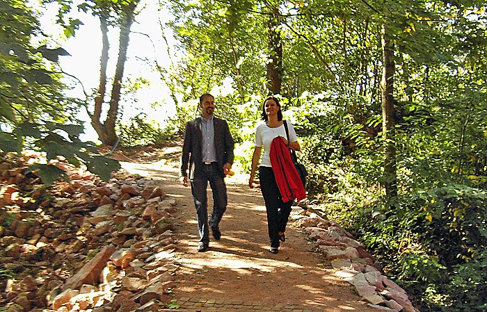 Mit der Fertigstellung und Nutzungsfreigabe dieses Weges kann auch die Mittelburg wieder durch die Besucher erlebt werden. Hier überzeugte sich die Landrätin des Kyffhäuserkreises Antje Hochwind (SPD) heute von den Bauausführungen. Die kurze Verbindung von der Oberburg zur Unterburg führt zu einer besseren Erlebbarkeit der Kyffhäuser Burganlagen als Ganzes. Es ist besonders schön, dass gerade zum Tag des offenen Denkmals auch dieser Denkmalbestandteil wieder offen ist.