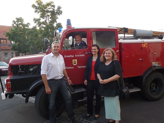 Im Rahmen einer Informationsveranstaltung anlässlich 150 Jahre SPD, welche von den Ortsvereinen Ebeleben und Holzthaleben, durchgeführt wurden, überreichte die Landrätin Antje Hochwind, gemeinsam mit dem Bundestagabgeordneten Steffen-Claudio Lemme und der Landtagsabgeordneten Dorothea Marx (alle SPD) einen Lottomittelbescheid über 1.700 Euro an den Feuerwehrverein Ebeleben. Dorothea Marx hatte sich beim Thüringer Justizminister Dr. Holger Poppenhäger für den Lottomittelantrag des Feuerwehrvereins stark gemacht.