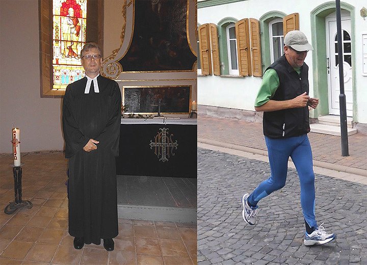 Propst Werneburg im Talar und später im Turnzeug