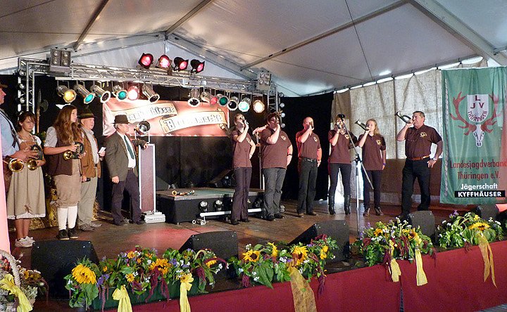 Autor: khhAnlässlich des ,,Frankenhäuser Bauernmarktes" am 15. September 2013 zeigte die ,,Kyffhäuser-Jägerschaft" einen bildlichen Abriss aus dem Leben eines Weidmannes. Das Festzelt war gut besetzt, als die Jägerinnen und Jäger mit den Jagdhörnern die Gäste