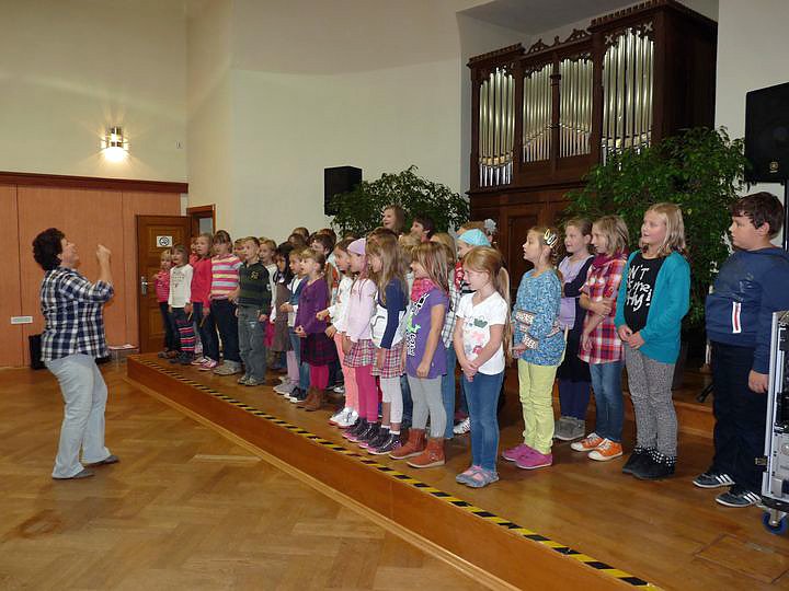 Erster Höhepunkt nach der Begrüßung war der Auftritt des neugebildeten Chors der Franzbergschule. der mit 49 Teilnehmern schon eine gute Größe erreicht hat. Obwohl erst gründet hatte man ein tolles Programm drauf, für das es viel Beifall gab. Unter Leitung von Frau Wenke musste der Chor noch eine Zugabe machen: Es klappert die Mühle am rauschenden Bach.