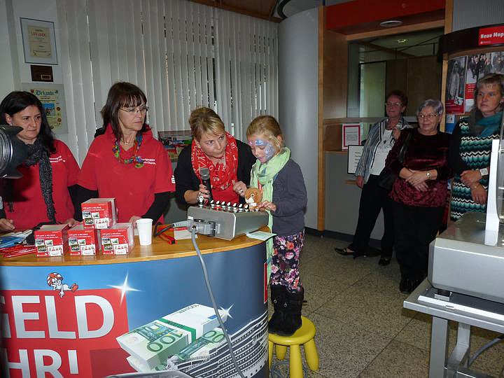 Am Nachmittag stand jedoch ein weiteres Ereignis im Mittelpunkt. Für die Sparkassen fand heute die Monatsauslosung der Glückszahlen des PS-Los-Sparens statt.