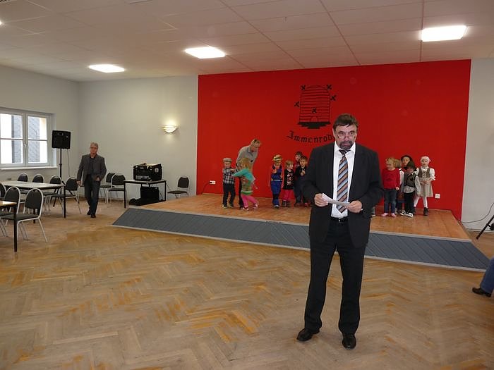 Autor: khhErste Nutzer der Bühne des neuen Saals waren die kleinen "Mühlenstrolche" der Kita Immenrode. Mit einem bunten Programm erfreute man am Nachmittag Bauarbeiter, Gäste und natürlich die Immenröder.