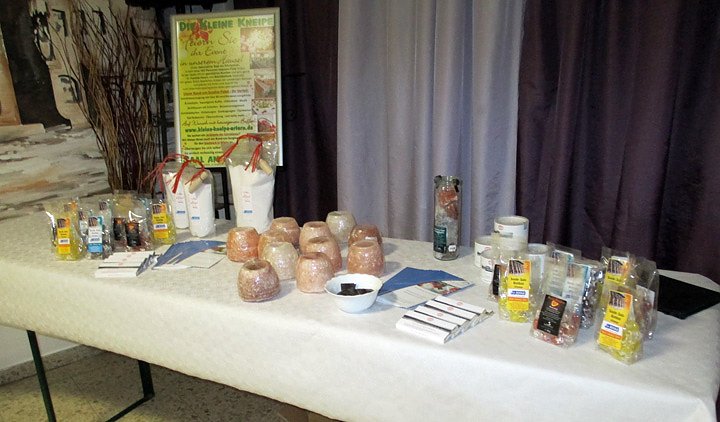 Frau Anke Poser hatte auch einige Salzprodukte( Salzbonbon, Salzlampe, Salzschokolade, verschiedene Salze usw.) mit, die man käuflich erwerben konnte. Von den Anwesenden wurde das rege genutzt. Wer wollte konnte auch Salzschokolade probieren und kaufen, das nutzte auch die Vorsitzende Ina Römer. Von Salzschokolade hatte sie noch nichts gehört, Salzbonbons kannte sie schon, denn die helfen auch bei beginnenden Halsschmerzen.