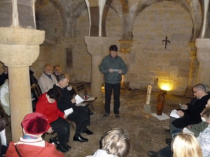 Die Kloster-Vesper findet allmonatlich am letzten Sonntag des Monats um 17.00 Uhr in der romanischenKrypta der Klosteranlage statt.