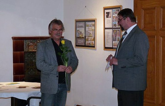 Wer austeilt kann auch einstecken. Nach der Laudatio von Bürgermeister Joachim Kreyer (CDU) erhielt Tempel eine Rose, mit der schmunzelnden Bründung, für mehr reicht das Geld der Stadt Sondershausen nicht.