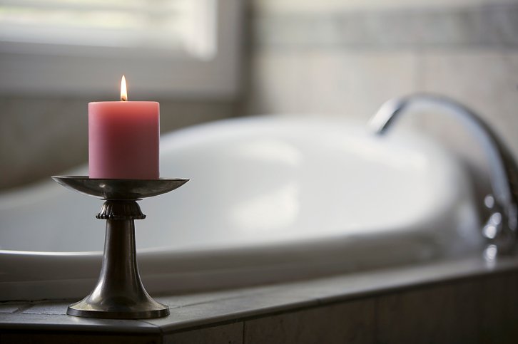 So sollten auch alle Badutensilien, die Frau und Mann für die tägliche Pflege brauchen, nicht einfach im Bad verstreut werden, sondern in Körben oder Ähnlichem ihren festen Platz haben. Daneben können Pflanzen nicht nur am Boden, sondern auch in Hängekörben ihre volle Wirkung entfalten. Schließlich sorgen Sie nicht nur für eine verbesserte Luftqualität, sondern tun auch der Seele gut. Farblich passende Kerzen können rund um die Badewanne aufgestellt werden. Wenn Sie Gäste haben, bietet sich beispielsweise auch eine Duftkerze auf der Fensterbank an. Denken Sie bei Kindern im Haushalt daran, dass sich die Kerzen außerhalb ihrer Reichweite befinden sollten.