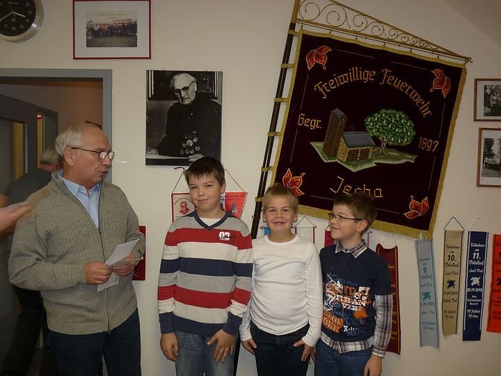 Danach gab es für die jüngsten Feuerwehrleute einen Umschlag mit 200 Euro. Der Feuerwehrverein übergab diese Geldprämie an die Jugendfeuerwehr der FFW SDH-Jecha. Marcel, Bernd und Philipp nahmen die Ehrung stellvertretend entgegen.