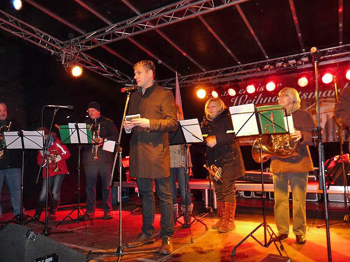 Bürgermeister Matthias Strejc begrüßte die Gäste. Auch dieses Jahr ist die Stadt Bad Frankenhausen wieder der Veranstalter des Weihnachtsmarktes. Mit Blick zum regnerischen Wetter sagte er, es wäre besser wir lägen als Stadt 600 Meter höher, da hätten wir jetzt schönen Schnee zum Start. Strejc bedankte sich bei alle Unterstützern des Weihnachtsmarktes.