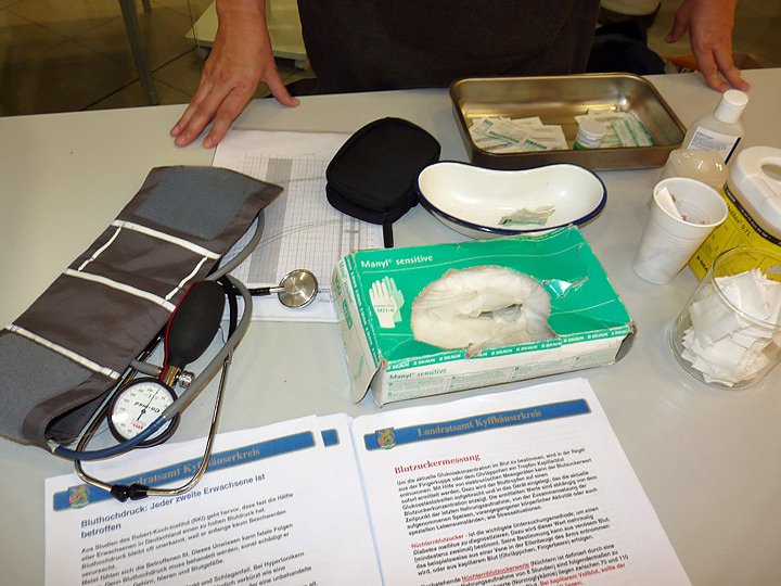 Auch kn ließ sich mal die Höhe des Blutzuckerspiegels testen und durfte erfahren, dass er bei 5,0 liegt und nicht zum Arzt muss, da der Wert im günstigen Bereich liege. Wie kn ließen sich etliche Bürger mal schnell die Werte von Blutdruck und Blutzucker ermitteln, zumal diese wichtige Dienstleistung heute kostenlos war.