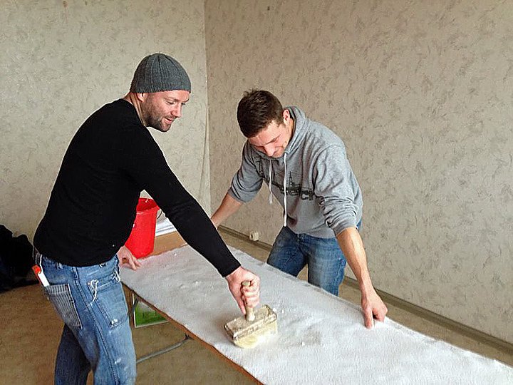 Mitarbeiter des Landratsamtes Kyffhäuserkreis sind u,a, bei der Herrichtung der Wohnungen aktiv dabei.