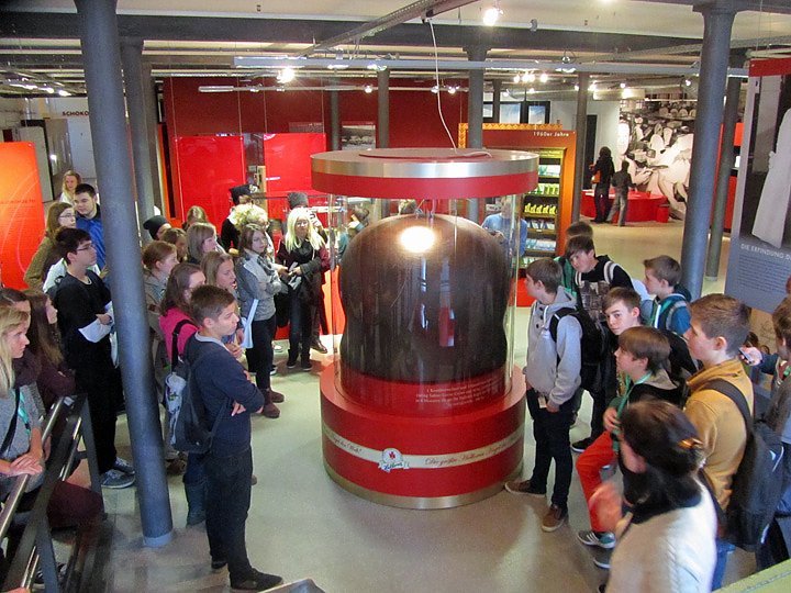 In Halle angekommen, ging es direkt zur Halloren Schokoladenfabrik. Dort konnten die jungen Leute viel über die Entdeckung, die Geschichte und den Weg der Schokolade bis nach Europa erfahren, Kakaobohnen riechen und schmecken, den Ursprung der Hallorenkugeln kennenlernen, die größte Hallorenkugel der Welt bestaunen und am Schokoladenbrunnen den Duft von Schokolade intensiv wahrnehmen.