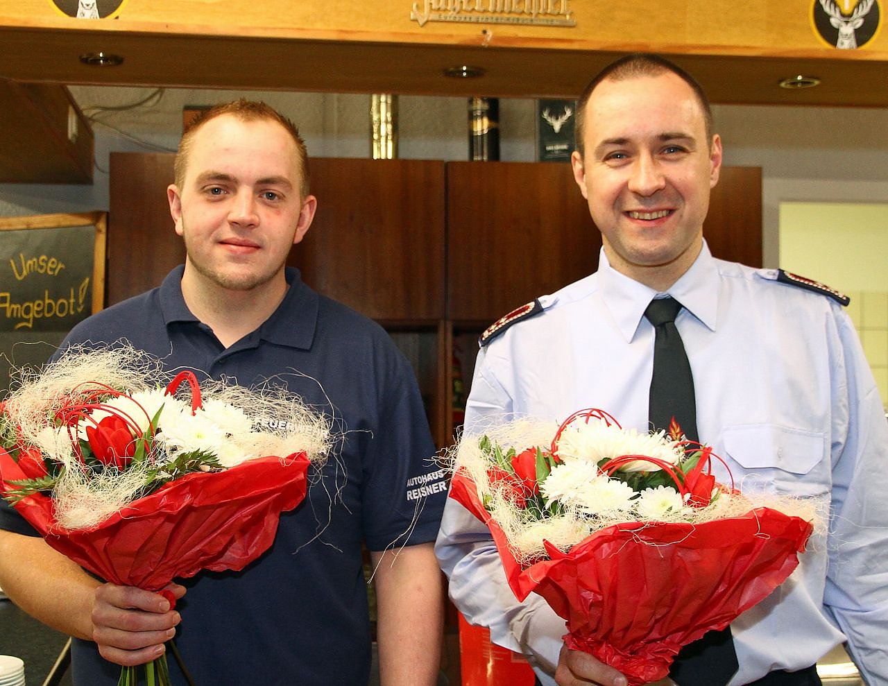 Für hervorragende Leistungen in der Vereinsarbeit wurden die Kameraden Stefan Ostermann und Tobias Schmidt mit der goldenen Ehrennadel des Kreisfeuerwehrverbandes ausgezeichnet.