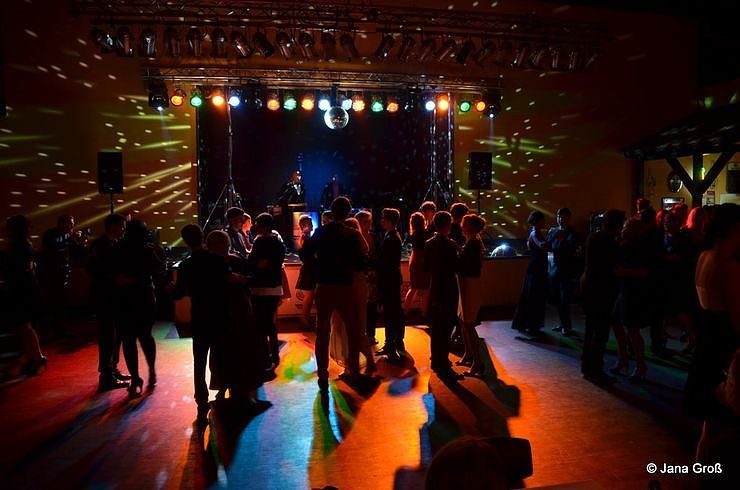 Nach und nach leerte sich der Saal – die älteren Semester traten den Heimweg an, die eigentlichen Protagonisten des Abends standen lieber (unbeobachtet) draußen vor der Tür… Kurz nach Mitternacht beendete Herr Lindemann offiziell den Abend – nicht ohne einem Geburtstagskind aus den Reihen der Tanzschüler gratuliert zu haben.
