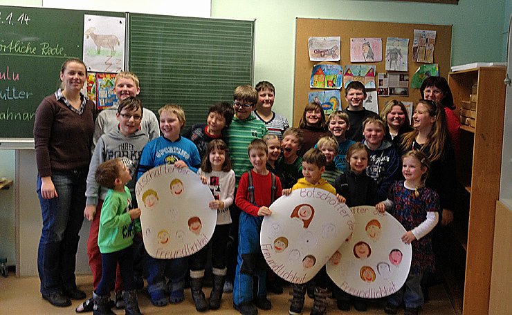 Der Auftakt fand am 28.01.2014 am Förderzentrum statt und bot eine gute Gelegenheit, das Vorhaben Wir bereiten anderen Menschen eine Freude - wir verschenken ein Lächeln sofort in die Tat umzusetzen. Denn zufällig gab es an diesem Tag ein Geburtstagskind, dem die Kinder, unterstützt durch die Schüler der Klassen 1 und 2, mit Geburtstagslied und Blumen eine Überraschung bereiten konnten.