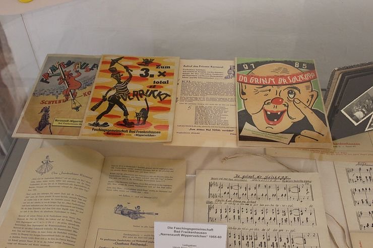 Mit vielen Bildern, Kostümen, Requisiten und Wissenswertem wird die Geschichte des Fasching in Bad Frankenhausen bunt in Szene gesetzt. Und ebenfalls mit Arbeiten dabei ist Fritz Wallrodt der Ehrenbürger der Stadt Bad Frankenhausen, der sich auch intensiv dem Karneval widmete, damals noch unter dem Motto "DO GRINST D SALZKOPP"