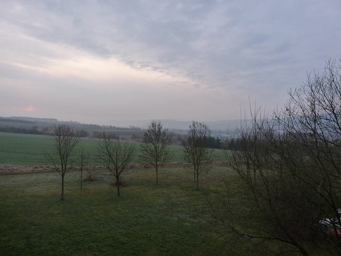 Das morgendliche Bild von gestern, als es mit -0,5 °C auch nicht wesentlich kälter war, verdeutlicht den Unterschied.