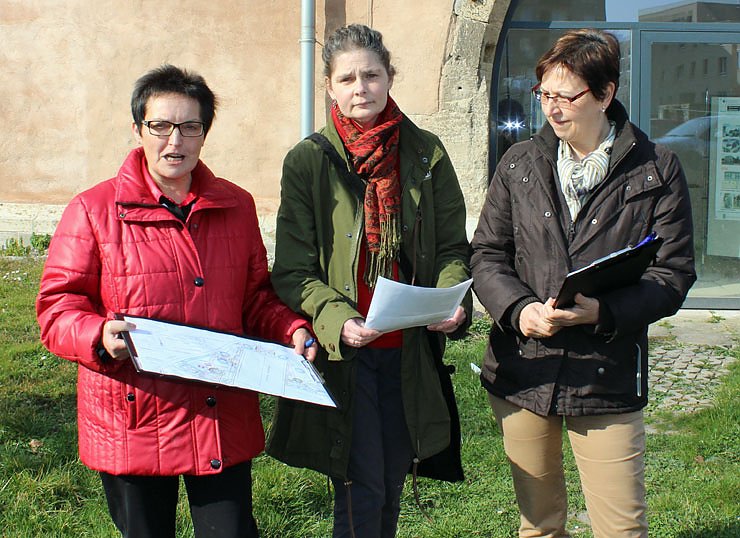 Wenn drei Damen vor dem Bürgerzentrum Cruciskirche Sondershausen mit Plänen diskutieren, dann erregt so etwas die Neugier von kn....