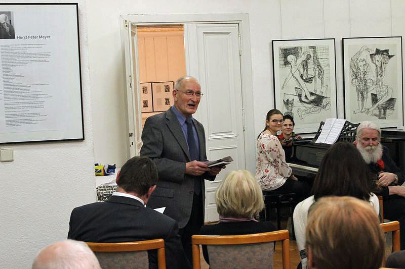 Blätter. Bilder. Bücher. Der Künstler Horst Peter Meyer war vor 34 Jahren mit seinen Bildern fast auf den Tag genau hier im Carl-Corbach-Club zu Gast. Damals wirklich "nur als Maler und Grafiker. Gestern war das etwas anders. Auch wenn schon viele Besucher frühzeitig kamen, um die Bilder zu betrachten, im Schwerpunkt lag das gestern anders.